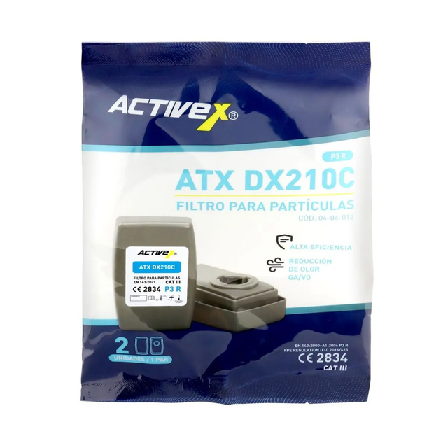 El filtro ATX DX210C está diseñado para ser utilizado con diversos respiradores, como el modelo ATX 100 TPR, ATX 150 Silicona, ATX 500 Silicona Clip-Sonic y ATX 1500 Silicona. Este filtro cuenta con una carcasa resistente a altas temperaturas y una excelente resistencia mecánica. Además, filtra eficazmente partículas aceitosas y no aceitosas, incluyendo humo de soldadura, polvo de radiación nuclear y fibra de vidrio. Ofrece protección contra partículas sólidas, líquidos acuosos y aceitosos con una eficiencia mínima del 99,95%. También contiene carbón activado que ayuda a aliviar olores de agentes contaminantes, como vapores y gases orgánicos en bajas concentraciones. Es ideal para proteger contra sustancias como carbón, asbesto, sílice, arsénico, cadmio, plomo y humos metálicos, entre otros. En resumen, el filtro ATX DX210C es una opción confiable y eficiente para diversas aplicaciones industriales.