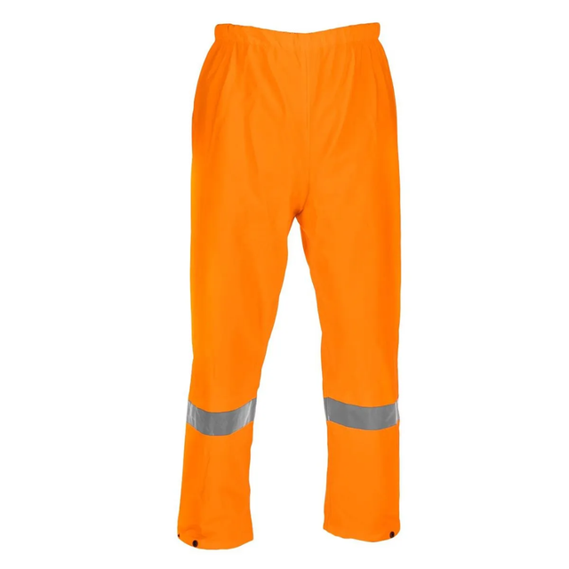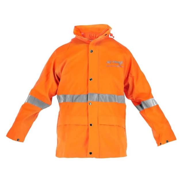 Traje antiácido de dos piezas fabricado en poliéster tejido (60%) con un recubrimiento de PVC (25%) y PU (15%). Chaqueta respirable, con capucha desmontable y pantalón con cintura elasticada. Ajustable en puños y tobillos.No propaga la llama. Ventilación bajo los brazos y en la espalda. Cinta reflectante de 2" (5 mm) en 360° en el torso y piernas.